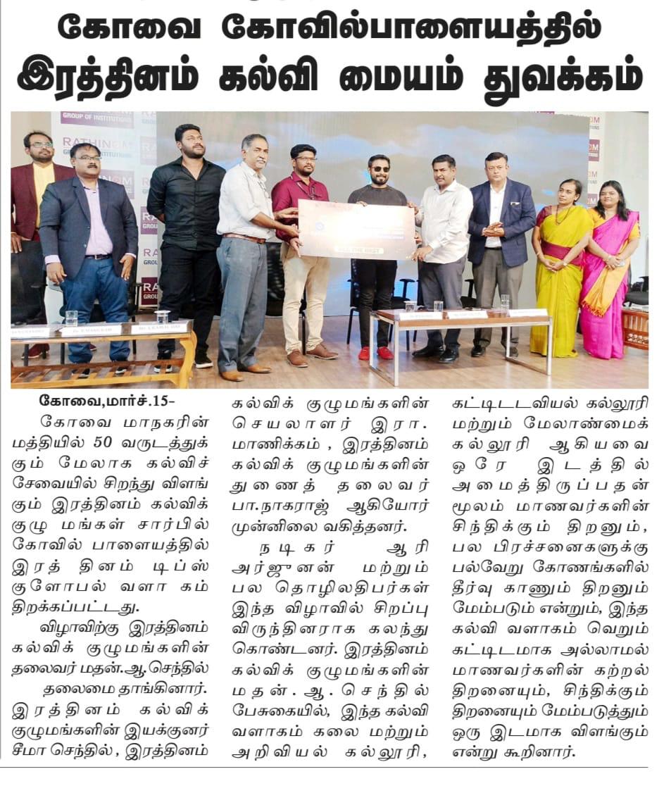 Read MoreAs a strong proponent of Experiential Learning, Rathinam Kovilpalayam Campus periodically organises various Guest lectures to enable the students gather the latest updates regarding their chosen industry sector.